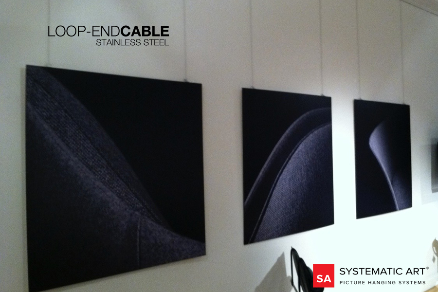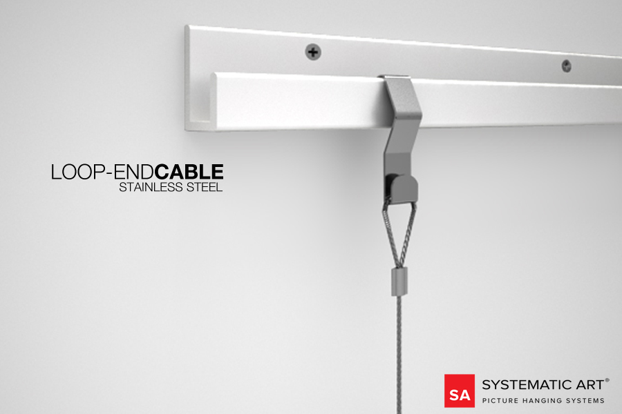 The Stainless Steel Loop-End Cable can be used in various ways to hang artwork and works exceptionally well with both the S-Hook and Molding Hook available in our specialty hanging section. The Picture Hanging Looped Cable can also work with both the Slim-Line and Click-Track rail systems when using the ball-end slider hook. The Stainless Steel Loop-End Cable provides excellent strength for hanging objects. It can be used with cable hooks such as the Heavy Duty S-Hook or Picture Molding Hook.